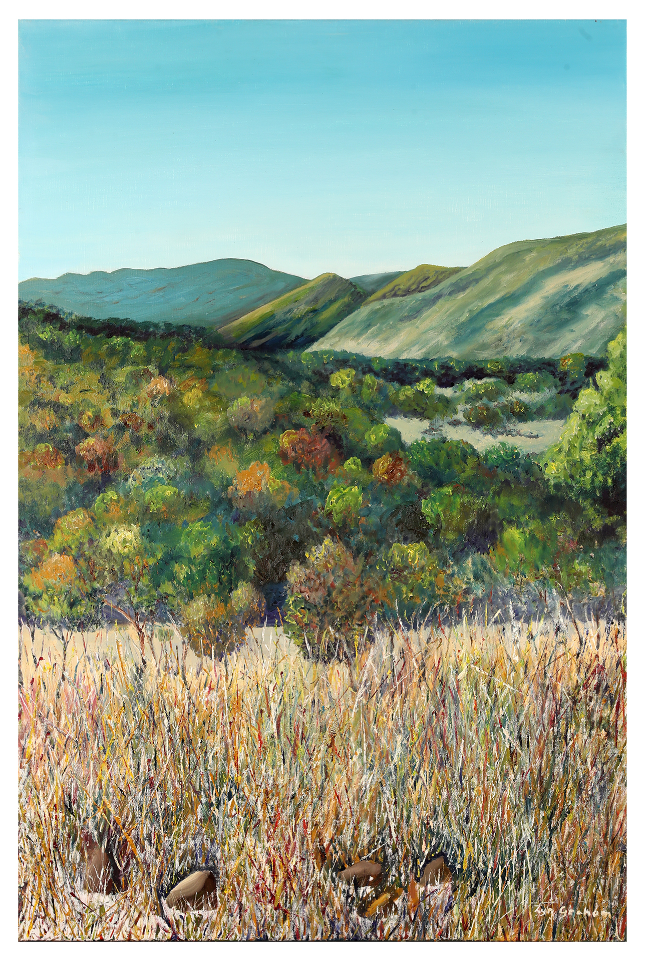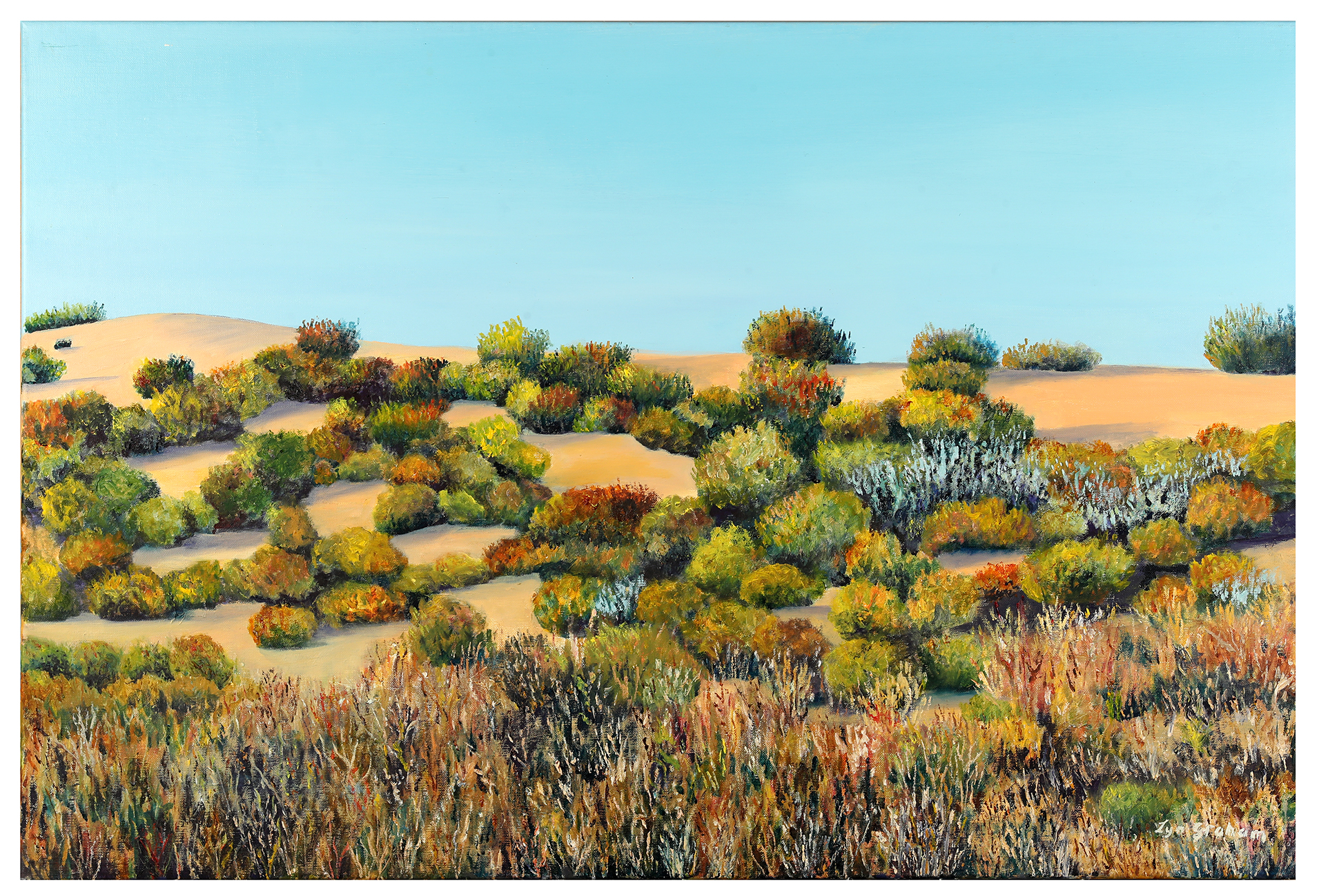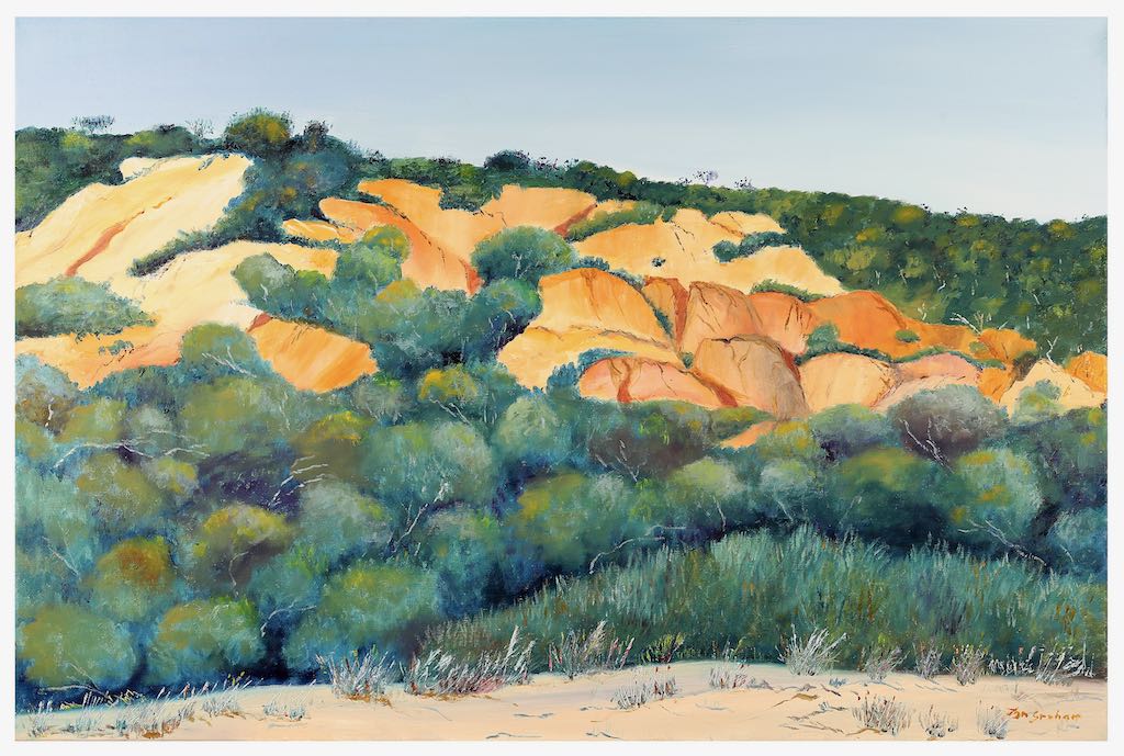 Disappearing Skylines, a series of 20 oil-on-linen paintings depicting the Simpson Desert, Torres Strait, Far North Queensland, the Galilee Basin, Fraser Island, the Sunshine Coast, Brisbane, Western Bass Strait and Tasmania, was exhibited at Latrobe Art Space in March 2022.