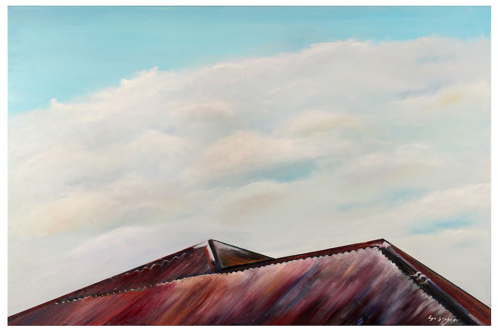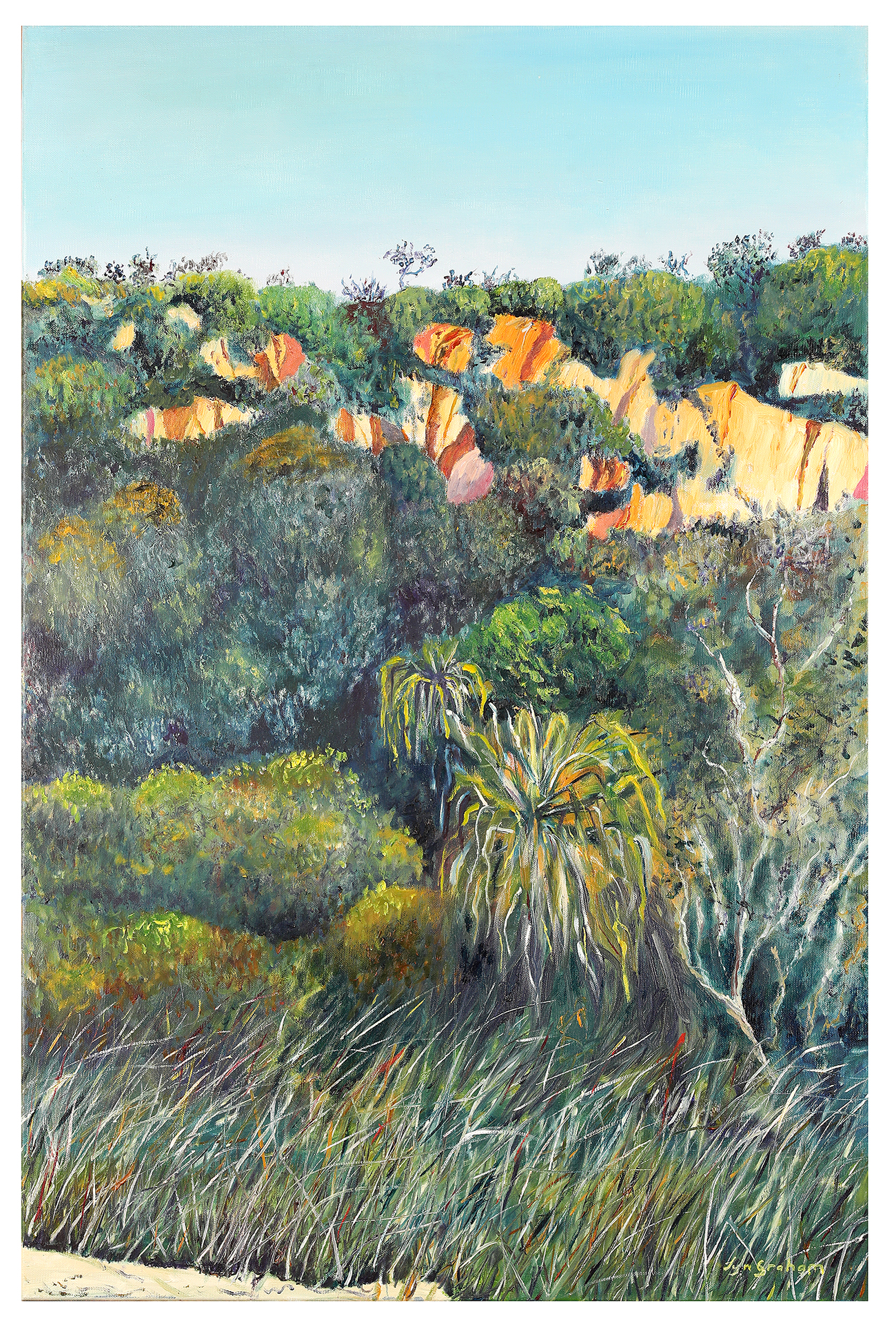 Lyn says: ‘One day, when I was on Teewah Beach north of Noosa, looking up at the high coastal dunes. I realised they reminded me of the rusting roofs in Brisbane’s West End where I live. I thought of the beautiful corrugated iron roofs that are disappearing, making way for high-rise towers, just as the coastal dunes are eroding. I thought then of the changing deserts, the vanishing forests and the rising oceans.