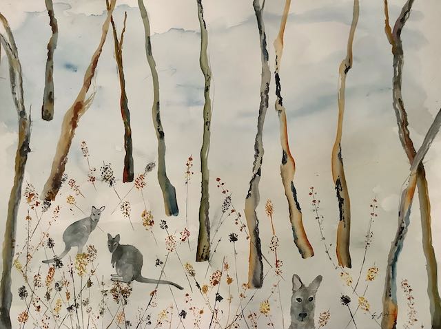 The woodlands paintings focus on the birds, animals and plants in Australia’s vast woodlands.