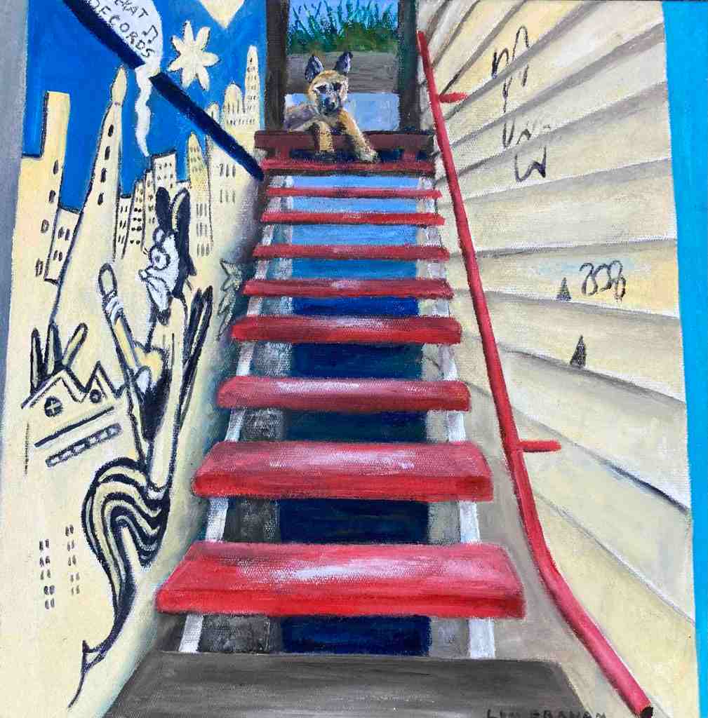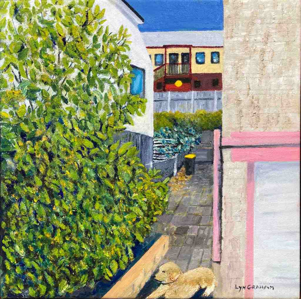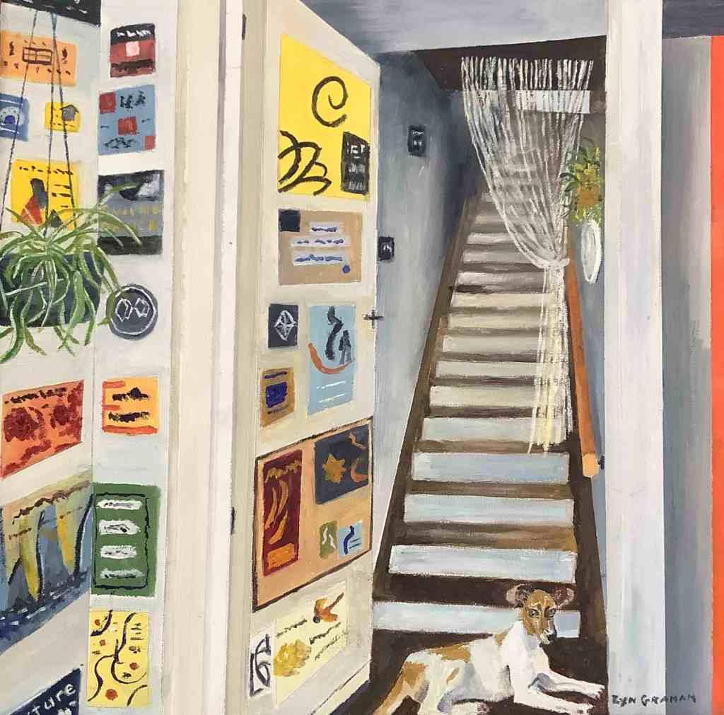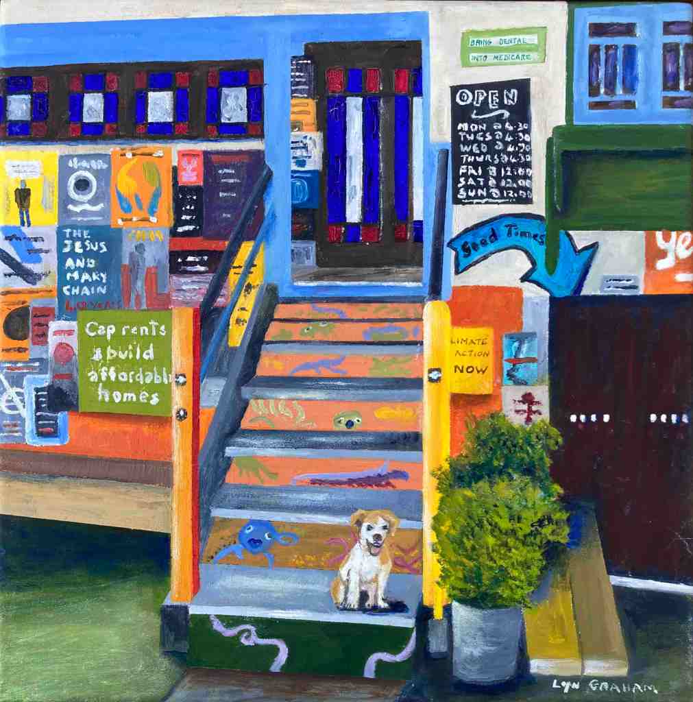 Lyn says, ‘My small Street Level paintings focus on West End’s gritty character – the doorways, alleys, graffiti and stairs we walk past every day. Over the 18 months of this project, I was struck by just how quickly our urban landscape changes as shops, cafes and bars come and go and graffiti is overpainted’.